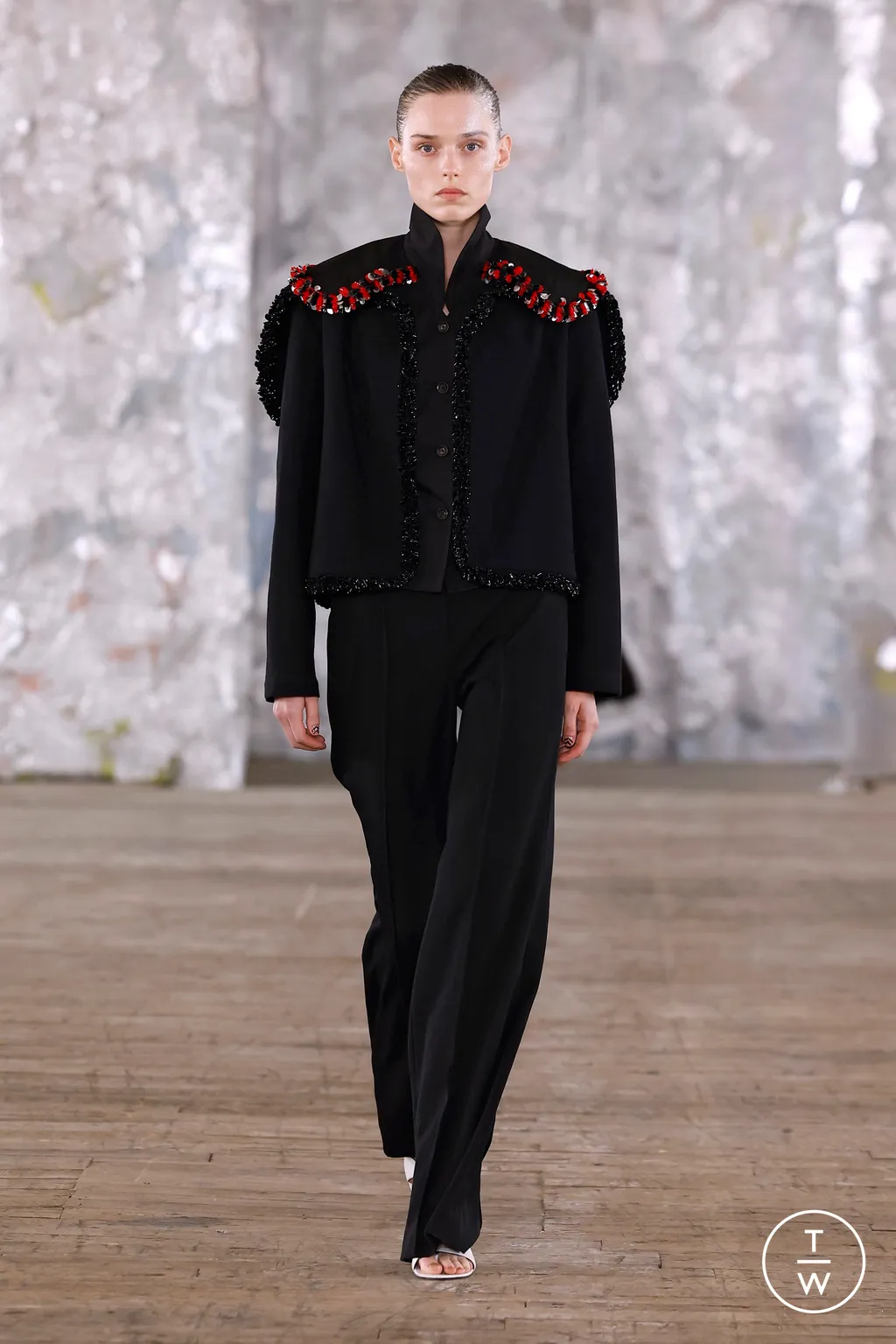 Traditional power pieces like blazers, spread-collar shirts, and trousers are reinterpreted with draped fabrics, loose cuts, and fluid layering. The result moves away from overt sex appeal toward a more understated sophistication. This approach stands in contrast to the 1980s revival of big shoulders and playful textures: sequins, feathers, and bold embellishments creating a dialogue between quiet restraint and expressive glamour.
